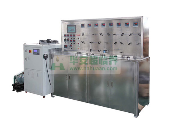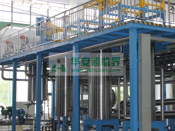 該裝置采用CO2作添加劑,主要應(yīng)用:食品、醫(yī)藥、香精、香料等有效成份的提取,精細(xì)分離。裝置由萃取釜、分離釜、精餾柱、CO2泵等組成:萃取釜為0.5-50L/32-50Mpa固液兩用,CO2循環(huán)使用。接觸流體的容器、閥門(mén)、管路采用1Cr18Ni9Ti不銹鋼制作。